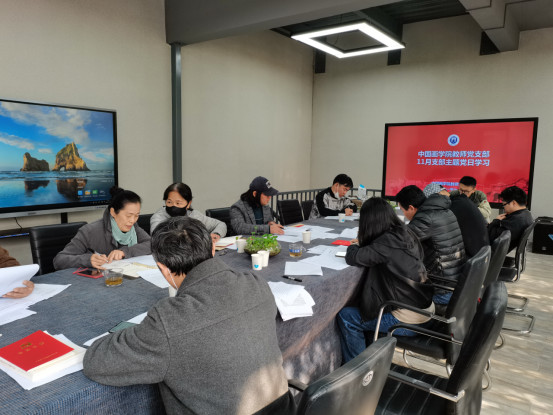 按照会议议程,首先开展了党史专题学习。肖蓝、张永康、周巍同志分别带领大家学习了十九届六中全会公报、《习近平新时代中国特色社会主义思想学习问答》第七章《万山磅礴有主峰》和《中国共产党简史》第六章《伟大历史转折和中国特色社会主义的开创》等党史相关的书籍和文件。